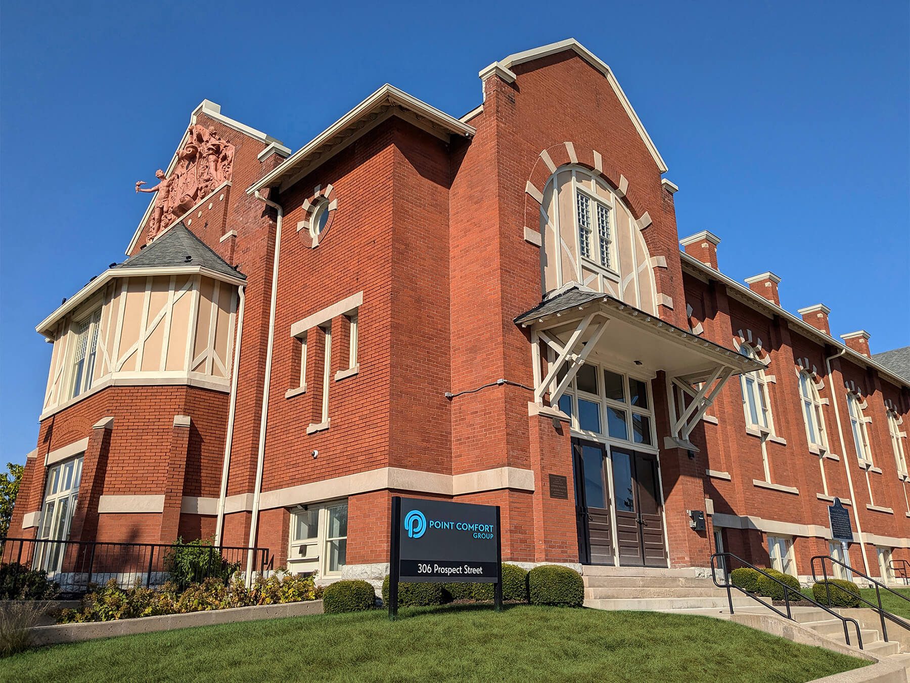 In November, 2018, Point Comfort Group (PCG) celebrated the grand re-opening of our new corporate headquarters in Indianapolis’s 'South Side Turnverein.' Located on the south side of downtown Indianapolis in the Bates-Hendricks neighborhood, this beautiful historic building was once on the list of the 10 Most Endangered Indiana Landmarks. The adaptive use and revitalization of a centuries-old German social club and gym is a perfect union of PCG’s core values: compassion, community, health, preservation and sustainability.
