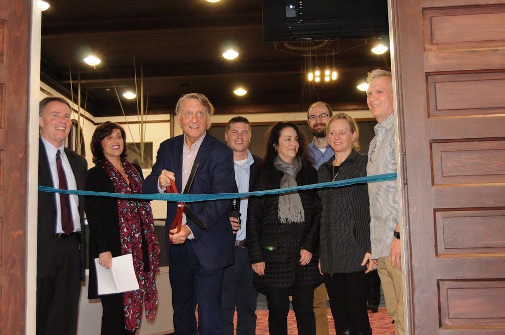 Joined by the mayor of Indianapolis, a crowd inaugurates the re-opening of the South Side Turnverein building for use as Point Comfort's new headquarters.